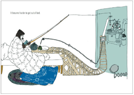 With a truly glorious selection of Heath-Robinson-esque ideas to keep herself fed and watered (thankfully the book skips deftly over any need to keep a potty under the bed), Stina initially thinks her plan is a fabulous one.